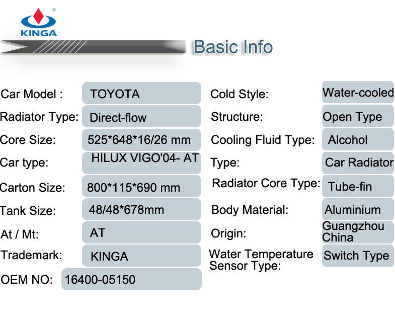 Radiador automático para TOYOTA HILUX VIGO'04- AT 16400-05150
